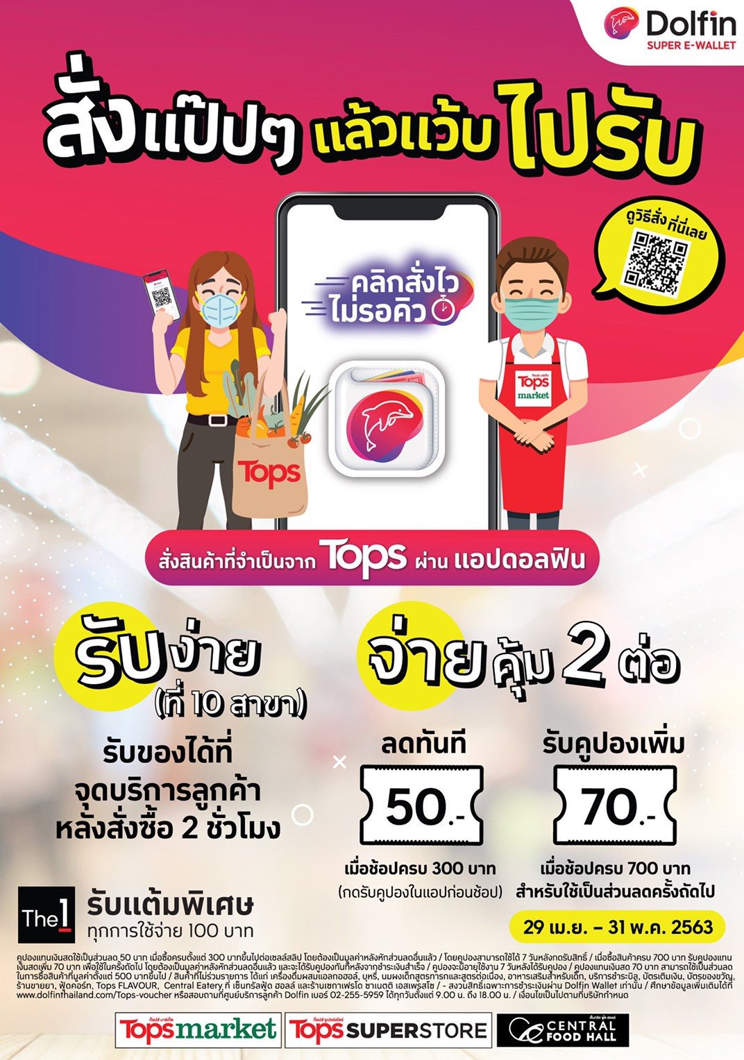 โดยการชำระเงินแบบไร้สัมผัส ด้วยแอปพลิเคชั่น “Dolfin” จากเซ็นทรัล เจดี ฟินเทค (บริษัทร่วมทุนระหว่างกลุ่มเซ็นทรัล และเจดี ดิจิตอล) ซึ่งสามารถสแกนจ่ายเงินได้ทันที โดยไม่ต้องจับเงินสด หรือบัตรเครดิต ในเครือเซ็นทรัล รีเทล กว่า 3,100 จุดทั่วประเทศ พร้อมบริการเพิ่มเติมจากแอปพลิเคชันที่มอบประสบการณ์ใหม่ให้กับลูกค้าอย่างครบวงจร อาทิ บริการ “Order & Collect” คลิกสั่งไว ไร้สัมผัส จ่ายเงินง่ายในแอป และรับของได้ที่หน้าร้าน เริ่มใช้แล้วที่ท็อปส์ 10 สาขานำร่องและร้านอาหารในเครือเซ็นทรัลฯ พร้อมทั้งยังมีบริการตอบสนองความต้องการด้วย Omnichannel Personalization ผ่าน Digital Platform ให้ลูกค้าสะสม และใช้ Digital Voucher เมื่อจ่ายผ่านแอป Dolfin และรับ The 1 Point เพิ่มขึ้นทุกครั้งที่จ่าย