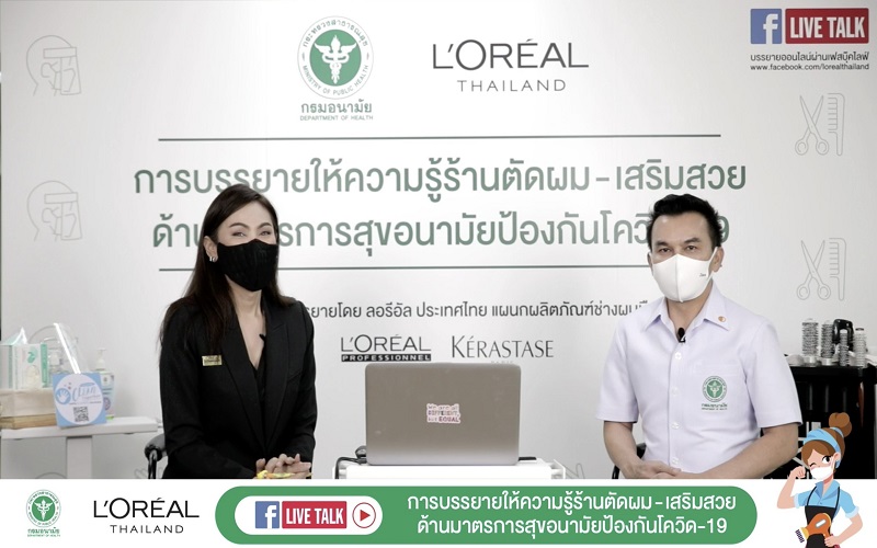 กรมอนามัย กระทรวงสาธารณสุข จับมือกับ ลอรีอัล ประเทศไทย แผนกผลิตภัณฑ์ช่างผมมืออาชีพ จัดบรรยายให้ความรู้รายละเอียดมาตรการด้านสุขอนามัยสำหรับร้านเสริมสวย เพื่อป้องกันการแพร่ระบาดของโควิด-19 ตามแนวทางที่ศูนย์บริหารสถานการณ์การแพร่ระบาดของโรคติดเชื้อไวรัสโคโรนา 2019 (โควิด-19) ได้ประกาศข้อกำหนดและมาตรการผ่อนปรน ตอกย้ำบทบาทของลอรีอัล ในการช่วยเหลือและสนับสนุนธุรกิจร้านเสริมสวยในประเทศไทย และเป็นหนึ่งกิจกรรมในโครงการ L’Oréal Thailand Salon Solidarity โดยการบรรยายจัดขึ้นผ่านทางเฟซบุ๊ก ไลฟ์ ของ ลอรีอัล ประเทศไทย เพื่อช่วยยกระดับมาตรฐานสุขอนามัยร้านเสริมสวย ทั้งยังช่วยสร้างความมั่นใจให้ลูกค้าผู้ต้องการเข้าใช้บริการร้านเสริมสวย โดยมีเจ้าของร้านเสริมสวย ช่างผม เจ้าหน้าที่ในร้านเสริมสวย และประชาชนผู้สนใจรับชมการบรรยายออนไลน์ดังกล่าวกว่า 9,000 ครั้ง