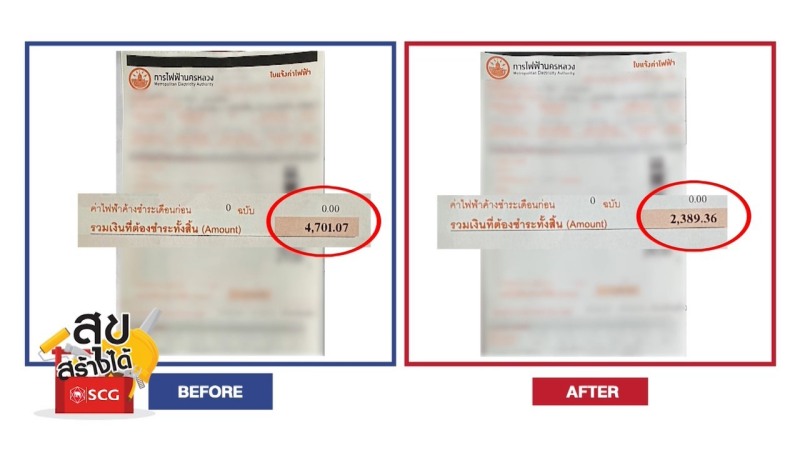 ภาพ: ค่าไฟ ก่อนและหลังติดตั้งโซลาร์ รูฟ เอสซีจี จากลูกค้าผู้ใช้จริง