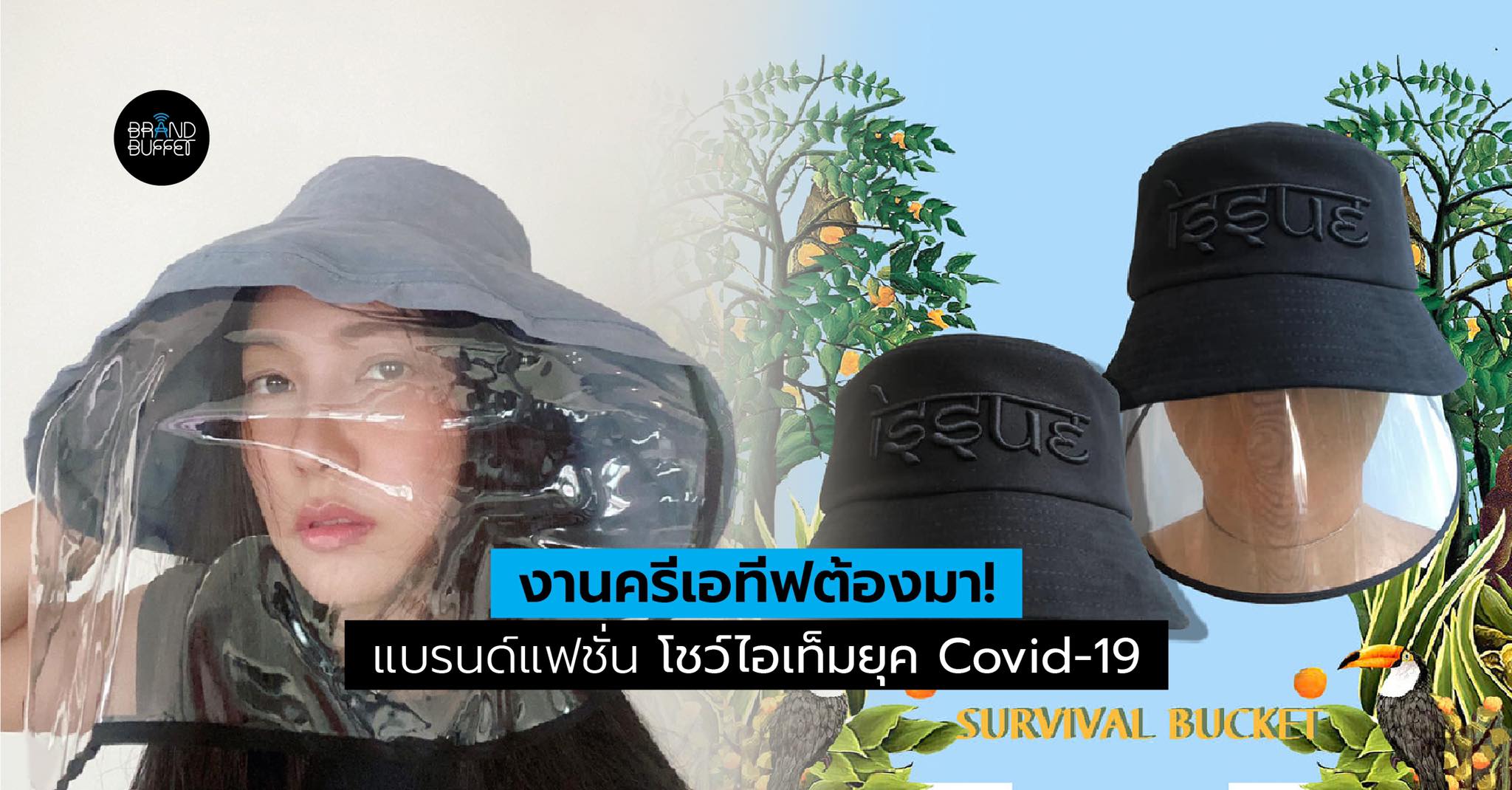 แบรนด์แฟชั่นไทยที่โดดเด่นเรื่องดีไซน์และเต็มไปด้วยความสนุกอย่าง ISSUE (อิชชู่) ได้ผลิตหมวกหมวกสไตล์บักเก็ตกันไวรัสสุดเท่ ซึ่งใส่แล้วไม่เพียงแต่ป้องกันแสงแดด ยังปกป้องสิ่งแปลกปลอมมาสัมผัสใบหน้า ด้วยแผ่นฟิล์มใสที่โอบรอบศรีษะ พร้อมพิมพ์โลโก้บนหมวก ออกมาด้วยกัน 2 สี คือ ขาวและดำ ราคา 1,290 บาท
