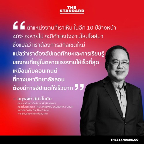 คำถามคือ แล้วทักษะแบบไหนที่จะทำให้มนุษย์แรงงานสามารถอยู่รอดบนสังเวียนธุรกิจยุคใหม่ที่เต็มไปด้วยความไม่แน่นอน ที่พร้อมจะงัดมาทำงานและต่อสู้ในสนามรบได้ตลอดเวลา มาถอดภาพทักษะและการเรียนรู้แห่งอนาคต ผ่านมุมมองคุณอนุพงษ์ อัศวโภคิน ประธานเจ้าหน้าที่บริหาร บริษัท เอพี (ไทยแลนด์) จำกัด (มหาชน) ที่มาเผยอย่างหมดเปลือกถึงปัญหาของการศึกษาไทย และ 4 ทักษะในการรับมือกับวีถีโลกใหม่ในยุคต่อจากนี้