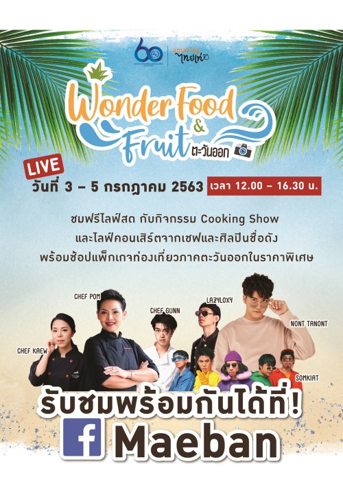 ผู้ที่สนใจสามารถรับชมการ Live ของกิจกรรม ‘Wonder Food & Fruit ตะวันออก’ ผ่านทาง Facebook Fan page https://www.facebook.com/Maeban.co.th ได้ตั้งแต่วันที่ 3 – 5 กรกฎาคม 2563 เวลา 12.00 – 16.30 น. โดยสามารถพบกับกิจกรรมต่างๆ ได้ ดังต่อไปนี้
