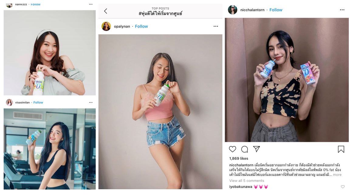 เท่านั้นไม่พอ ดัชมิลล์ไลฟ์พลัสยังระดม Macro-Micro Influencer หลากหลายสไตล์รวมมากกว่า 10 ล้าน Follower ทั้งสาวสวย สาวฟิต ตัวอย่างเช่น น้ำตาล พิจักขณา , นิวเคลียร์ หรรษา , เกรซ กาญจน์เกล้า ,ยิปซี คีรติ และ ToktakA4 เป็นต้น มา represent สาวๆในแต่ละสไตล์ด้วยการกระหน่ำโพสรูปสินค้าคู่กับหุ่นสวยๆ หรือ กิจกรรมเพื่อสุขภาพ เพื่อทำให้เกิดติดตาและกระตุ้นการพิจารณาทดลองสินค้าอีกรอบนึง
