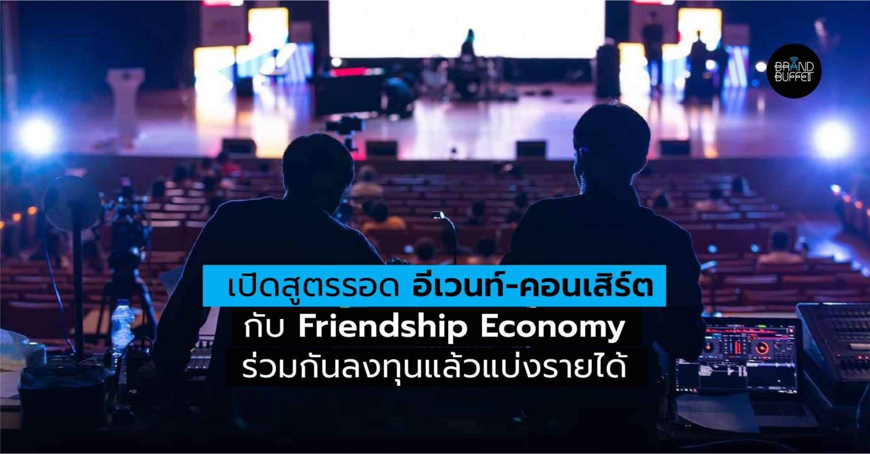 รูปแบบการจัดคอนเสิร์ตเดิม “ผู้จัด” ต้องลงทุนเช่าสถานที่ ระบบ และจ้างศิลปินมาแสดง หารายได้จากการขายบัตร แต่อย่างที่รู้การจัดคอนเสิร์ตแบบ New Normal มีความเสี่ยง จากการถูกจำกัดจำนวนที่นั่ง โอกาสขาดทุนจึงมีสูง แต่การทำธุรกิจแบบ Friendship Economy ผู้ประกอบการแต่ละด้านลงทุนในส่วนที่ตัวเองมี โดยไม่ต้องมีการจ้างแบบเดิม คือ Hall ลงทุนสถานที่จัดงาน ออร์กาไนเซอร์ลงทุนระบบ ศิลปิน ทำหน้าที่แสดงคอนเสิร์ตโดยไม่ต้องจ้าง แต่ทั้งหมด คือ “เพื่อนฝูง” ที่มาทำธุรกิจร่วมกันและแบ่งรายได้กัน โดยไม่มีใครต้องแบกรับต้นทุนอยู่รายเดียว ในสถานการณ์ที่ยังมีความเสี่ยงขณะนี้