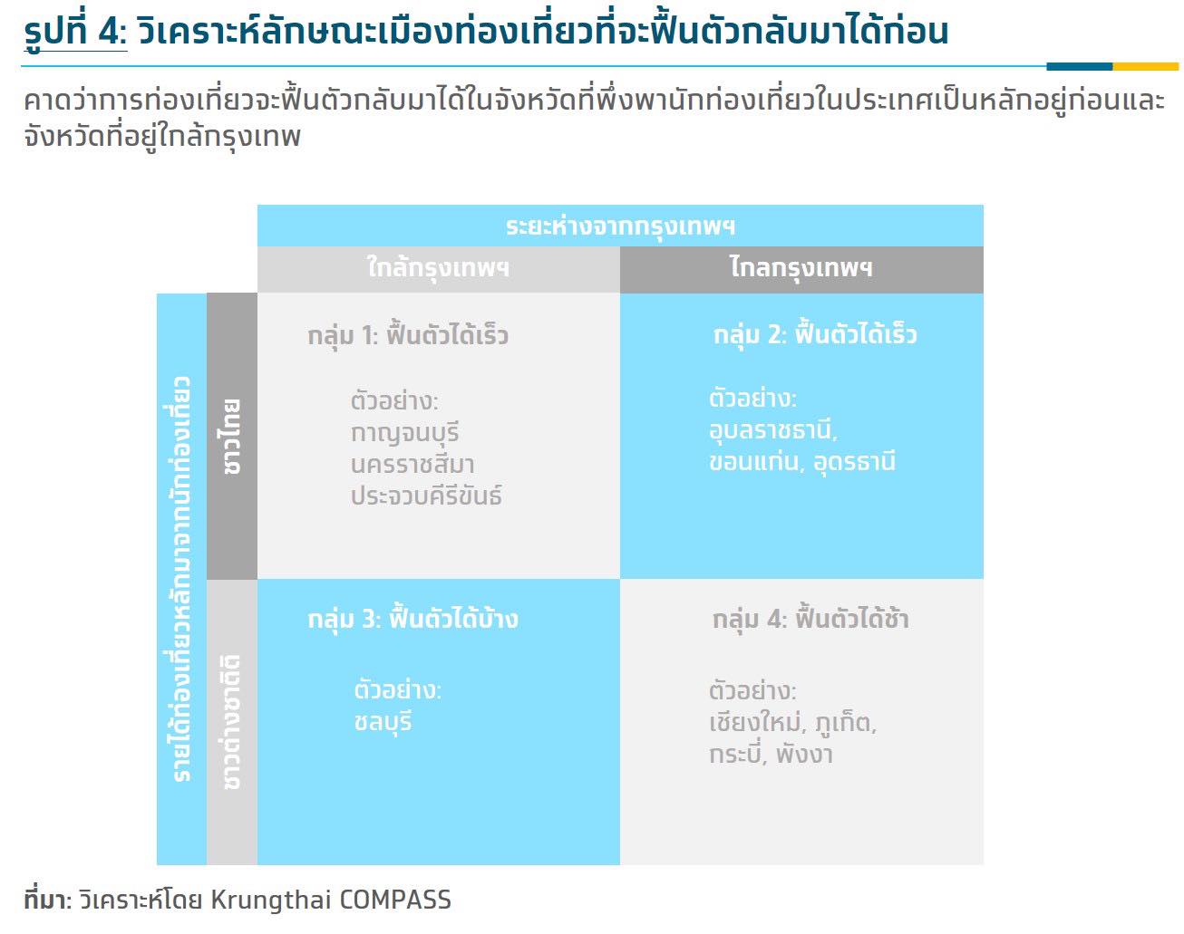 4.กลุ่มไกลกรุงเทพฯ และต่างชาติเยอะ เป็นกลุ่มที่มีโอกาสฟื้นตัวได้ช้าที่สุด เช่น เชียงใหม่ ภูเก็ต พังงา กระบี่ เป็นต้น
