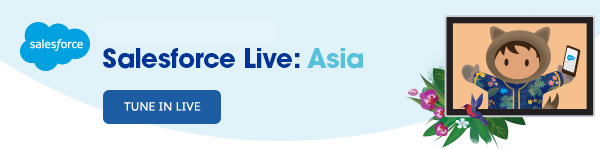 รับชม Salesforce Live: Asia ย้อนหลังได้ ที่นี่ หรือผ่านทาง salesforce.com/ap/events/asia2020/agenda