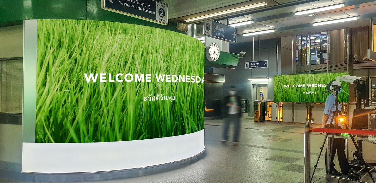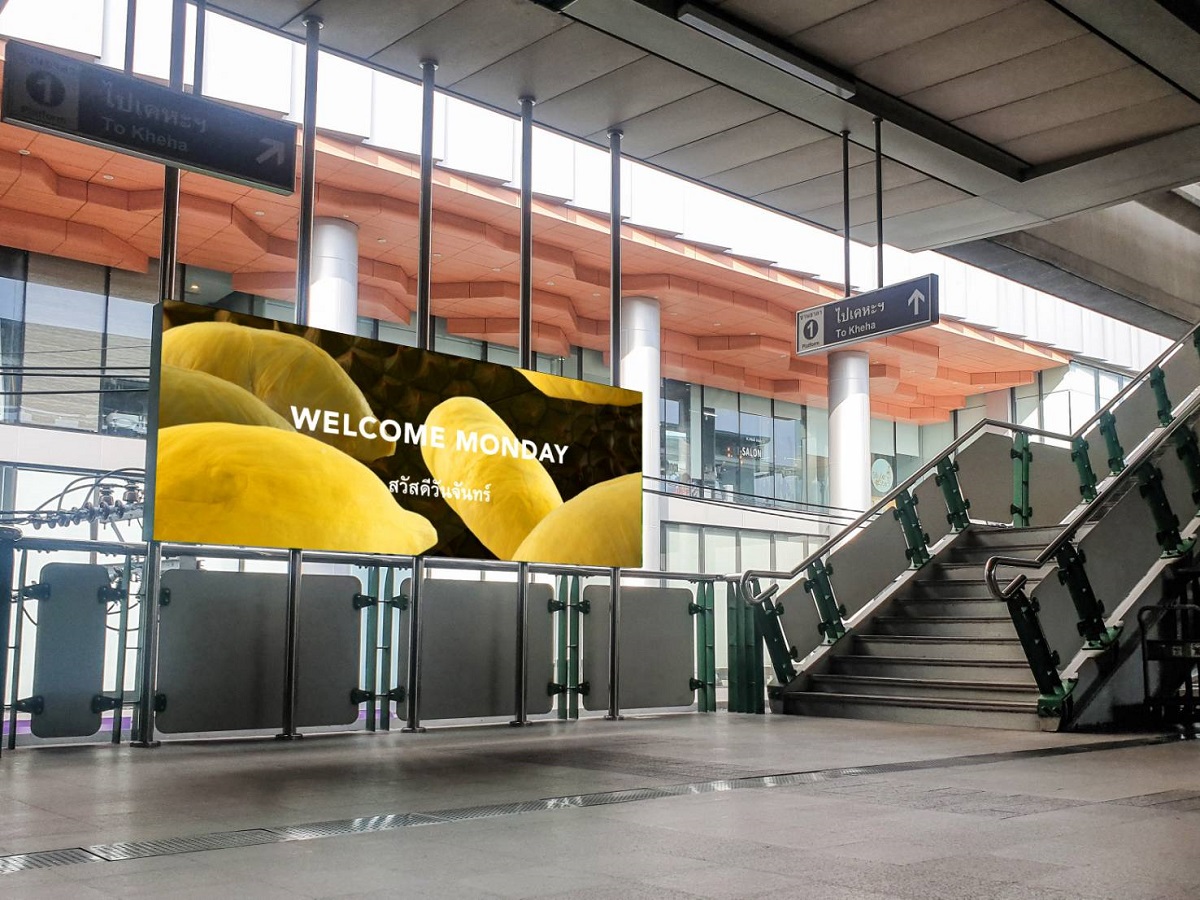 ด้วยคอนเทนท์ สวัสดีแบบไทย 7 วัน 7 สไตล์ ผ่านจอ LED Screen บริเวณทางเข้าสถานี ซึ่งได้รับแรงบันดาลใจมาจากการทักทายของไทยที่ผสานความเชื่อเรื่องสีมงคลประจำวัน รวมถึงดึงจุดเด่นของไทย อย่าง พืชผัก ผลไม้ ดอกไม้ อาหาร และธรรมชาติที่มีจุดเด่นของสีเป็นเอกลักษณ์มาสร้างสรรค์ผลงาน โดยค่านิยมที่เป็นเอกลักษณ์นี้ ถูกนำมาใช้เป็นลูกเล่นในการต้อนรับผู้โดยสารในแต่ละวันไม่ซ้ำกัน เช่น วันอาทิตย์สีแดง ใช้ภาพพริกเป็นตัวแทนสี แล้วขึ้นข้อความว่า “Welcome Sunday สวัสดีวันอาทิตย์” เป็นต้น