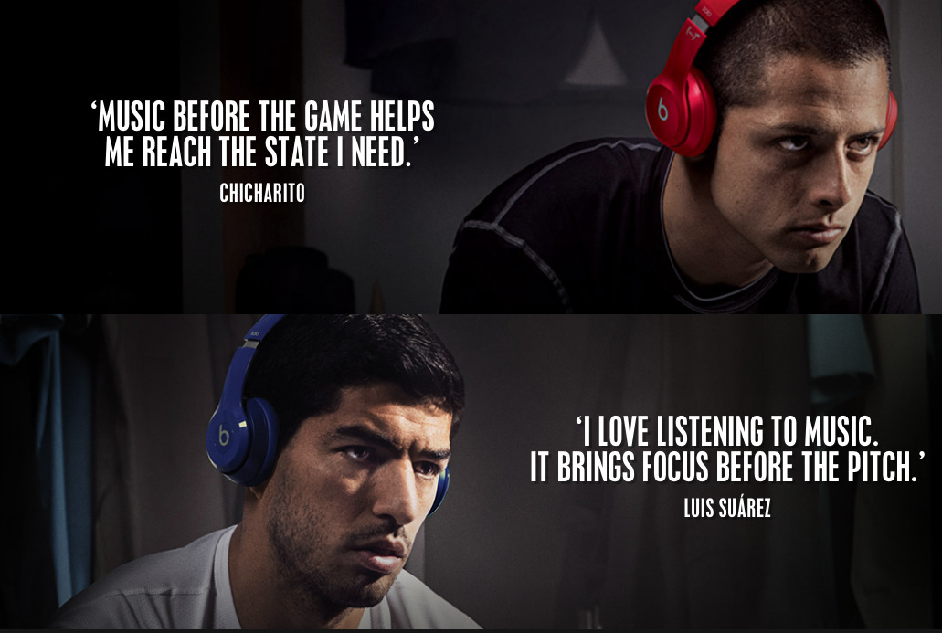 โดยในฟุตบอลโลกปี 2014 เนย์มาร์เดินเข้าสนามด้วยการใช้หูฟัง Beats by Dre พร้อมทั้งในแคมเปญก็ปล่อยโฆษณาชุด The Game before The Game ความยาว 5 นาที เล่าเรื่อง กองเชียร์ที่อยู่เบื้องหลังและคอยลุ้นร่วมไปกับนักเตะของชาติตัวเอง ในโฆษณาชิ้นนี้มีดาวดังหลายชาติ เช่น ชิชาริโต้ / โรบิน ฟานเพอร์ซี่/ ริโอ เฟอร์ดินาน ร่วมแสดงด้วย