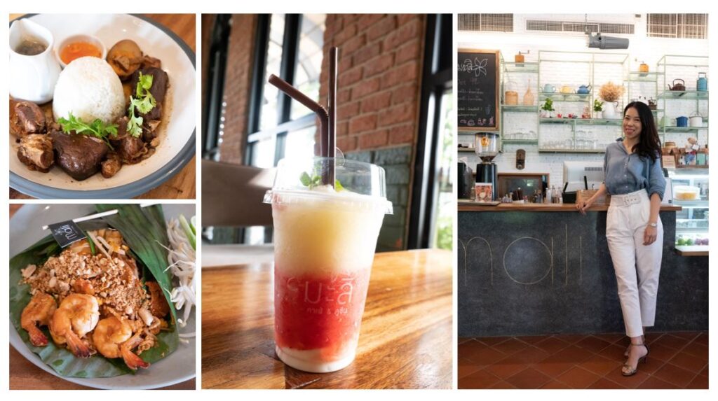 4. มะลิ คาเฟ่ & คูซีน คาเฟ่ไทยเท่ ภายใต้คอนเซปต์ “ห้องรับแขกแห่งราชบุรี” ที่มีบรรยากาศความเป็นไทยผสมผสานกับความร่วมสมัยของความเป็นคาเฟ่ที่เรียบง่าย แต่มีรายละเอียดผ่านการตกแต่งให้บรรยากาศอบอุ่น พร้อมบริการอาหารผสมผสานมีเมนูให้เลือกหลากหลายทั้งไทยและต่างชาติ แบบอาหารคาวและหวาน นอกจากนี้ทางร้านยังมีไวไฟบริการสำหรับลูกค้า เพื่อให้สามารถนั่งทำงาน ประชุมงานกลุ่มย่อยได้ โดย สสว. ได้เข้าไปพัฒนาในเรื่องการสร้างแบรนด์ผ่านสื่อออนไลน์ การถ่ายภาพและวีดีโอ พร้อมการจัดทำเนื้อหา