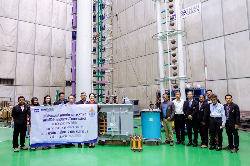 นายอัมพรทัต พูลเจริญ กรรมการบริษัท ถิรไทย จำกัด (มหาชน) มอบครุภัณฑ์ทางการศึกษา เพื่อใช้ประกอบการเรียนการสอน ติดตั้งในห้องปฏิบัติการเรียนไฟฟ้าแรงสูง ภาควิชาวิศวกรรมไฟฟ้า มหาวิทยาลัยนราธิวาสราชนครินทร์ เพื่อเป็นการเปิดโอกาสให้เยาวชนในพื้นที่จังหวัดนราธิวาสและใกล้เคียง ที่ส่วนใหญ่เป็นชาวมุสลิมนับถือศาสนาอิสลาม ได้มีโอกาสเข้าศึกษาระดับอุดมศึกษามากขึ้น ครุภัณฑ์ที่มอบมีดังนี้ Testing Transformer 10 kVA 1 phase 100 kV, Sphere Gap, Isolating Transformer 2kVA และ Model หม้อแปลงแสดงโครงสร้างภายใน โดยมี ผู้ช่วยศาสตราจารย์ อารัญ วรรณอานนท์ รองคณบดี คณะวิศวกรรมศาสตร์มหาวิทยาลัยนราธิวาสราชนครินทร์ รับมอบ พร้อมเยี่ยมชมการผลิตหม้อแปลงไฟฟ้ากำลัง ขนาด 333.33 MVA ระดับแรงดัน 525 kV ณ บริษัท ถิรไทย จำกัด (มหาชน) นิคมอุตสาหกรรมบางปู เมื่อเร็วๆ นี้