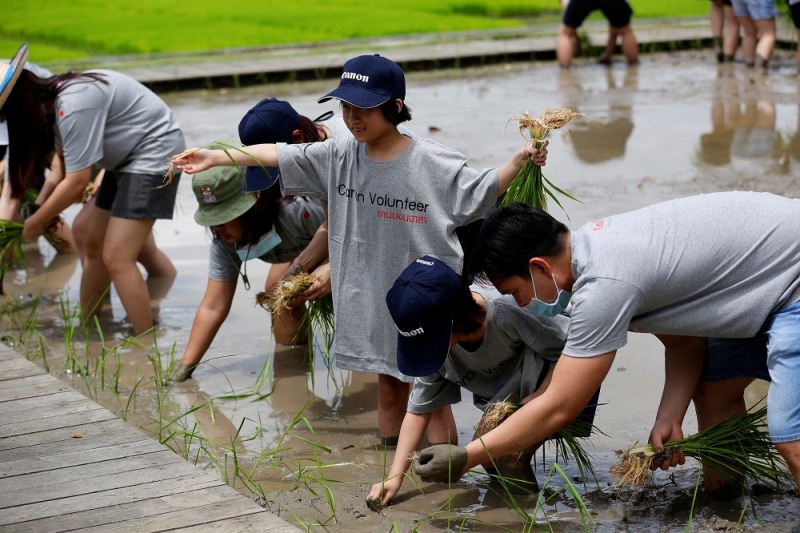 ด้วยเหตุนี้เอง บริษัท แคนนอน มาร์เก็ตติ้ง (ไทยแลนด์) จำกัด จึงได้จัดกิจกรรม Canon Volunteer ครั้งที่ 26 โดยมีวัตถุประสงค์เพื่อให้ความรู้เรื่องหลักเศรษฐกิจพอเพียง การพึ่งพาตนเอง รวมถึงความสำคัญของการสร้างความมั่นคงทางอาหารให้เกิดขึ้นในชุมชน รวมถึงครอบครัวพนักงาน ให้โดยเปิดโอกาสให้พนักงานอาสาสมัครของบริษัทฯ พร้อมบุตรหลาน รวม 50 คน ได้เรียนรู้วิถีชีวิตการเกษตรผสมผสาน ณ ศูนย์เรียนรู้วิถีชีวิตและจิตวิญญาณชาวนาไทย (นาเฮียใช้) จังหวัดสุพรรณบุรี ชมการจัดการและพัฒนาแปลงนาสาธิตและพันธุ์ข้าวต่างๆ นอกจากนี้ยังให้อาสาสมัครและเด็กๆ ได้เรียนรู้การดำนา การปลูกข้าว การเลี้ยงควาย เพื่อให้เข้าใจวิถีชีวิตชาวนาไทย และรู้จักคุณค่าของข้าวมากยิ่งขึ้น