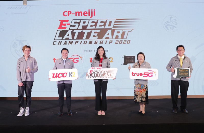 คุณชาลินี พูนลาภมงคล ผู้ช่วยกรรมการผู้จัดการฝ่ายองค์กรสัมพันธ์ บริษัท ซีพี-เมจิ จำกัด (คนที่ 3 จากซ้าย) แถลงข่าวเตรียมจัดการแข่งขัน CP-Meiji E-Speed Latte Art Championship 2020 ระหว่างวันที่ 17-18 พฤศจิกายน 2563 นี้ สานต่อแนวคิดในการส่งเสริมและพัฒนาศักยภาพบาริสต้าไทยสู่สากลในรูปแบบการแข่งขันออนไลน์ครั้งแรกของโลก ภายใต้วิถีปกติใหม่ New Normal ณ ทรู ดิจิตอล ปาร์ค