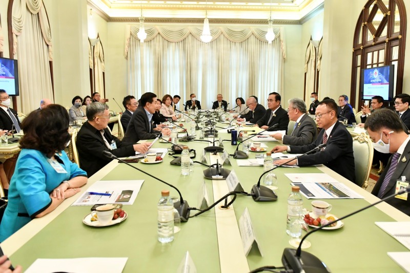 นายกรัฐมนตรีกล่าวเปิดการประชุมสั้นๆ ใจความโดยสรุปว่า “มากกว่าการก้าวผ่านวิกฤตโควิดและวิกฤตเศรษฐกิจที่เกิดขึ้นทั้งโลกไปให้ได้ ผมคิดว่า ตอนนี้เป็นช่วงเวลาที่สำคัญอย่างยิ่ง ที่เราควรจะมองไปในอนาคตที่ไกลกว่านั้น และเราควรจะใช้ช่วงเวลานี้ให้เป็นโอกาส ที่จะนำพาประเทศไทยให้ไปอยู่ในจุดที่ดียิ่งขึ้น นั่นคือเหตุผลที่ผมเชิญทุกท่านมาในวันนี้ เพื่อแบ่งปันมุมมอง ความคิด ในฐานะที่เป็นบุคคลที่สุดยอดในภาคธุรกิจนี้ มีความรู้ความสามารถ และมีประสบการณ์ตรงมายาวนาน ผมอยากทราบว่า ท่านมีมุมมองหรือความคิดในการขับเคลื่อนภาคส่วนของท่านอย่างไร โอกาสของภาคธุรกิจของท่านเป็นอย่างไร อนาคต 3 ปีข้างหน้าภาคธุรกิจของท่านควรจะไปอยู่ที่จุดไหน อุปสรรคคืออะไร เป้าหมายของผม คือผมต้องการเข้าใจประเด็นหลักๆ และเข้าใจโดยลึกจากการฟังตรง ซึ่งจะเป็นประโยชน์อย่างมาก เมื่อเวลาผมพิจารณานโยบาย หรือโครงการที่หน่วยงานต่างๆ นำเสนอ ผมจะสามารถตัดสินใจไปในแนวทางที่จะสนับสนุนวิสัยทัศน์ของพวกท่านได้”