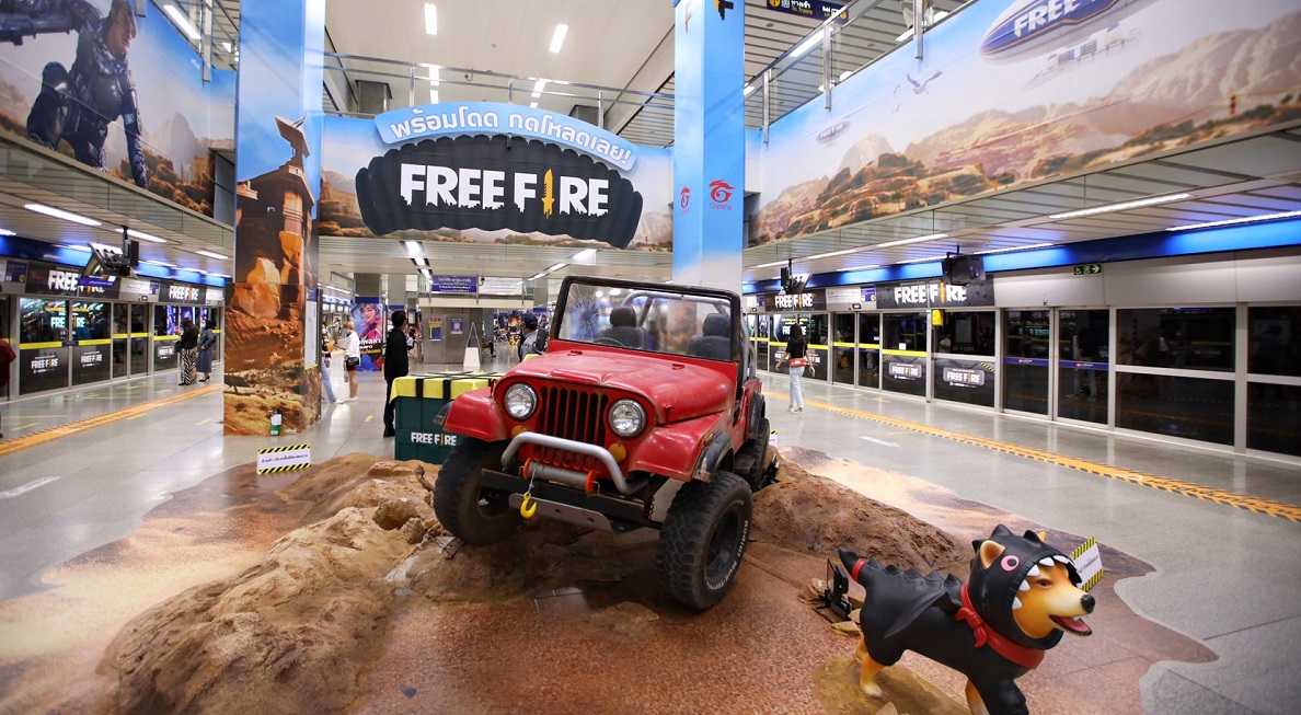 แคมเปญ FREE FIRE WORLD ในสถานี MRT จตุจักร เป็นการสร้างสรรค์พื้นที่สื่อโฆษณารูปแบบใหม่ของสื่อ OOH ด้วยการดึงดูดความสนใจของผู้ใช้บริการรถไฟฟ้าเข้ากับ Journey of Excitement ในทุกจุดของพื้นที่ตั้งแต่ประตูทางเข้าถึงชานชาลา เป็นการนำตัวละคร ฉากและบรรยากาศต่างๆ ในเกม ออกมาอยู่ในสถานีจตุจักร เพื่อให้ผู้โดยสารก้าวสู่โลกของเกม