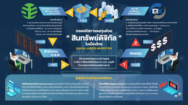 SE Digital (เอสอี ดิจิทัล) ผู้ปฏิวัติตลาดทุนยุคใหม่ด้วยสินทรัพย์ดิจิทัล และ ERX (อีอาร์เอ็กซ์) ผู้บุกเบิกแพลตฟอร์มซื้อขายโทเคนดิจิทัลรายแรกของไทย ประกาศความพร้อมเปิดให้บริการซื้อขายโทเคนดิจิทัลเต็มรูปแบบปลายปีนี้ พร้อมเจาะกลุ่มเป้าหมายนักลงทุนรุ่นใหม่ด้วยช่องทางการซื้อขายที่หลากหลายทั้งบนเว็บไซต์และแอปพลิเคชันสมาร์ทโฟน มอบอิสระการซื้อขายที่คล่องตัวกว่าทั้งในตลาดแรกและตลาดรอง พร้อมรองรับธุรกรรมดิจิทัลทุกวันตลอด 24 ชั่วโมง โดย SE Digital จะเปิดรับลงทะเบียนนักลงทุนผ่านแอปพลิเคชัน SE Digital บนระบบปฏิบัติการ iOS ตั้งแต่วันนี้เป็นต้นไป และมีกำหนดเปิดตัวแอปพลิเคชันบนระบบ Android ภายในเดือนมกราคม 2564 ส่วน ERX ได้เปิดรับลงทะเบียนแบบสาธารณะผ่านทางเว็บไซต์ er-x.io เพื่อให้นักลงทุนสามารถเตรียมตัวเทรดแล้ว