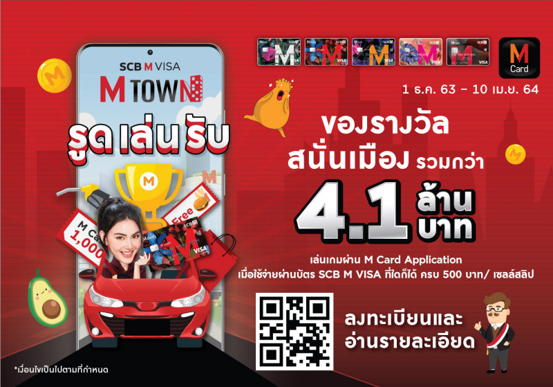 พบความสนุกรูปแบบใหม่แห่งการชอปปิง กับเกม “SCB M VISA – M Town รูด เล่น รับ ของรางวัลสนั่นเมือง” ที่พร้อมเปิดให้บริการแล้ว ตั้งแต่วันนี้ – 10 เมษายน 2564 สำหรับลูกค้าผู้ที่สนใจ สามารถดาวน์โหลด M Card Application หรือ ดูรายละเอียดเพิ่มเติมได้ที่ www.mcardmall.com, www.facebook.com/mcardforall และ M Card Application