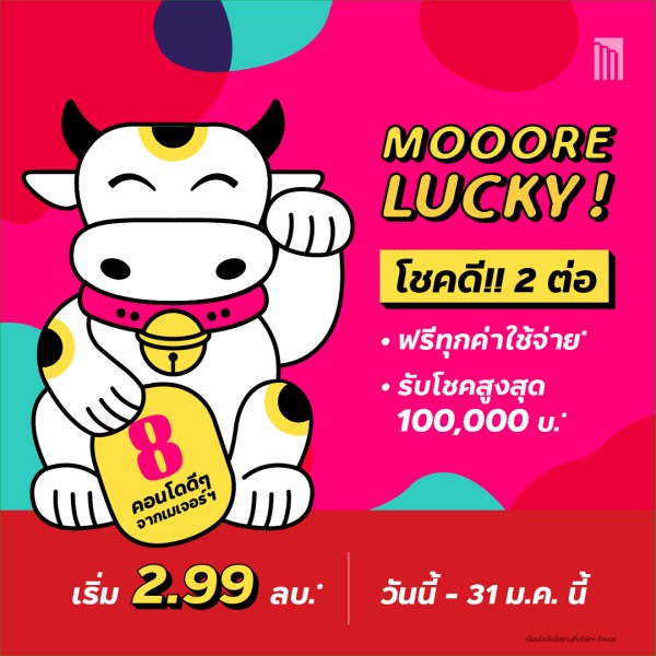 เมเจอร์ ดีเวลลอปเม้นท์ ฉลองปีใหม่คืนกำไรให้ลูกค้า ส่งคอนโดมิเนียมหรูพร้อมอยู่แบรนด์มาเอสโตร เมทริส เอ็ม และรีเฟล็คชั่นรวม 8 โครงการ จาก 8 ทำเลศักยภาพใจกลางเมือง เดินทางสะดวกใกล้สถานีรถไฟฟ้า ร่วมแคมเปญ “MOOORE LUCKY ยิ่งกว่าโชคดี ได้ฟรี! 2 ต่อ” ฟรีทุกค่าใช้จ่ายวันโอน และรับส่วนลดเพิ่มสูงสุด 100,000 บาท เริ่ม 2.99 ล้านบาท ถึง 31 ม.ค. นี้