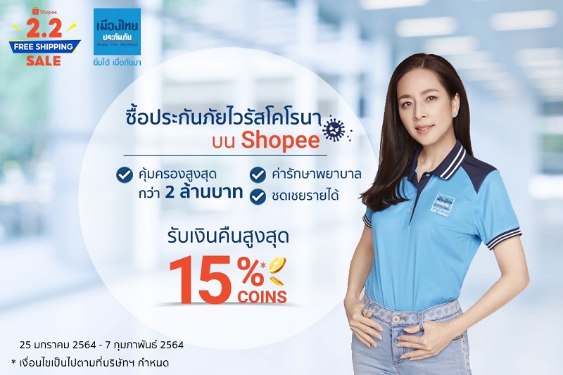 นางนวลพรรณ ล่ำซำ กรรมการผู้จัดการ และประธานเจ้าหน้าที่บริหาร บริษัท เมืองไทยประกันภัย จำกัด (มหาชน) หรือMTIเปิดเผยว่า“ช่วงที่ประเทศไทยโดนโจมตีด้วยภัยร้ายจากการแพร่ระบาดของเชื้อไวรัสโควิด-19 ทำให้ประกันภัยไวรัสโคโรนา 2019 (COVID-19)ได้รับการตอบรับจากลูกค้าทุกเพศ ทุกวัย ทุกอาชีพเป็นอย่างดี และมองว่าการจับมือกับบริษัท ช้อปปี้ (ประเทศไทย) จำกัด ในครั้งนี้ถือว่าเป็นโอกาสที่ดี และสำหรับแคมเปญ‘Shopee 2.2รวมประกันCovid-19’ครั้งนี้เราได้เน้นการสร้างประสบการณ์แห่งความ#อุ่นใจให้กับคนไทยได้เข้าถึงการหาความคุ้มครองด้านสุขภาพได้ง่ายมากยิ่งขึ้น เพียงแค่คลิกเลือกความคุ้มครองของประกันในฉบับที่ต้องการได้ง่าย ๆ และปักหมุดรอรับความพิเศษที่มีให้ที่นี่เดียวบนแอปพลิเคชั่นShopeeได้ตั้งแต่วันนี้ถึง 7 กุมภาพันธ์ 2564”