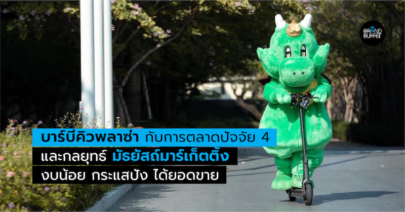 จากจุดนี้เอง ทำให้ “บาร์บีคิวพลาซ่า” (Bar B Q Plaza) หนึ่งในแบรนด์หลักของ “บริษัท ฟู้ดแพชชั่น จำกัด” ได้โฟกัสการทำตลาด “ปัจจัยสี่” ร่วมกับกลยุทธ์สไตล์ “มัธยัสถ์มาร์เก็ตติ้ง” ที่ใช้งบการตลาดน้อย แต่สามารถนำทั้งแบรนด์บาร์บีคิวพลาซ่า และคาแรคเตอร์ “บาร์บีกอน” เข้าไป connect กับผู้บริโภค และสร้างกระแสให้แบรนด์เป็นที่พูดถึง หรืออยู่ในบทสนทนาของผู้บริโภคได้ พร้อมทั้งต่อยอดดสู่การสร้างฐานลูกค้าที่รักแบรนด์ในระยะยาว
