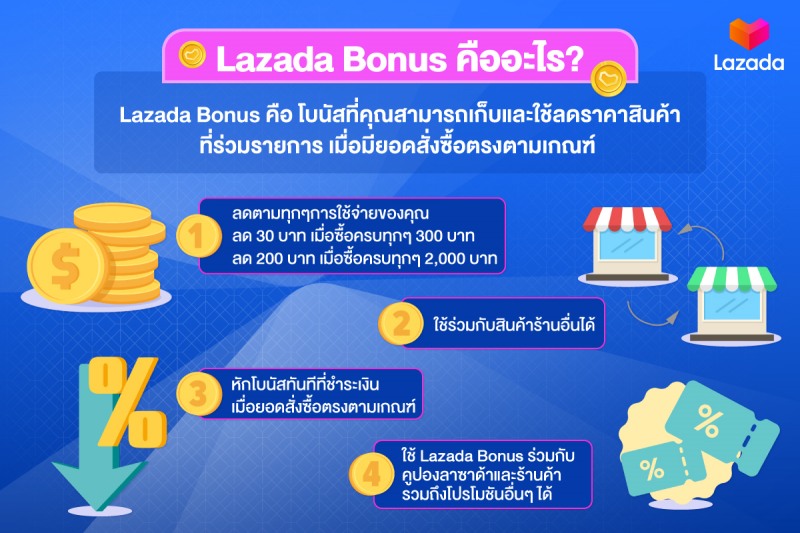 ยิ่งไปกว่านั้นลาซาด้ายังปรับกลยุทธ์เพิ่มความคุ้มค่าให้กับลูกค้า ด้วยการเปิดตัว Lazada Bonus โบนัสลดหลายต่อ ฟีเจอร์พิเศษครั้งแรกที่ให้ความคุ้มค่ากับลูกค้ามากกว่าที่เคย! เรียกได้ว่า ยิ่งช้อปยิ่งลด! พร้อมแจกลาซาด้าโบนัสมูลค่ารวมกว่า 100 ล้านบาท!