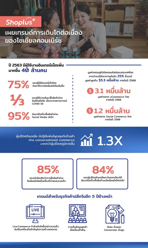 “ปัจจุบันพฤติกรรมการซื้อของลูกค้าเปลี่ยนไปและหันมาช้อปปิ้งผ่านโซเชียลมีเดียมากขึ้น นักช้อปกว่า 52% ในประเทศไทยมีปฏิสัมพันธ์กับร้านผ่านโซเชียลมีเดียก่อนตัดสินใจซื้อสินค้า แบรนด์ควรให้ความสำคัญกับการตอบรับเทรนด์ไลฟ์สดขายสินค้าเพื่อตอบสนองพฤติกรรมของผู้บริโภคที่เปลี่ยนไป และ Shoplus ได้มอบบริการสำเร็จรูปแบบครบวงจรที่สามารถปรับเปลี่ยนเพื่อให้เหมาะกับแต่ละแบรนด์มากที่สุด” คิมมี กล่าวเสริม