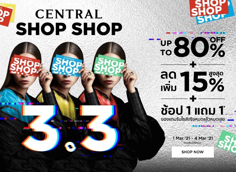 ขาช้อปออนไลน์อย่าพลาด!! ห้างเซ็นทรัล เสิร์ฟโปรฯ พิเศษเฉพาะแอปพลิเคชั่น CENTRAL APP และเว็บไซต์เซ็นทรัล www.central.co.th กับแคมเปญ “CENTRAL Shop Shop 3.3” วันที่ 1- 4 มีนาคม 2564 พบกับ Exclusive Deal จากแบรนด์ชั้นนำลดสูงสุด 80% พร้อมมอบโค้ดส่วนลดเพิ่มสูงสุดถึง 15% (เมื่อกดใช้คูปองในแอปฯหรือกรอกโค้ดส่วนลด) เตรียมช้อปฟินไปกับทัพสินค้าจากแบรนด์ดัง เสิร์ฟโปรโมชั่นสุดฮอต อาทิ