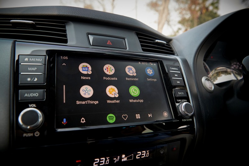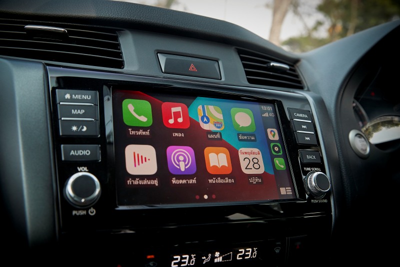 ไม่เพียงเท่านั้น นิสสัน นาวารา ใหม่ ยังพาสื่อมวลชนผู้ร่วมเดินทางเชื่อมต่อทุกแพลตฟอร์มความบันเทิงตลอดการเดินทางด้วย NissanConnect ระบบที่สามารถเชื่อมต่อสมาร์ทโฟน (ผ่านระบบ Apple CarPlay และ Android Auto*) เข้ากับระบบสื่อสาร ระบบนำทาง และระบบเครื่องเสียง ซึ่งสามารถควบคุมผ่านหน้าจอระบบสัมผัสขนาด 8 นิ้ว รวมถึงเพิ่มเติมความปลอดภัยผ่านบริการ Connected Car Services ที่เป็นการทำงานร่วมกันระหว่างอุปกรณ์ที่ติดตั้งภายในรถยนต์และฟังก์ชันสำคัญต่าง ๆ อาทิ การแสดงพิกัดรถยนต์ สถานะรถยนต์ การช่วยเหลือฉุกเฉิน ฯลฯ