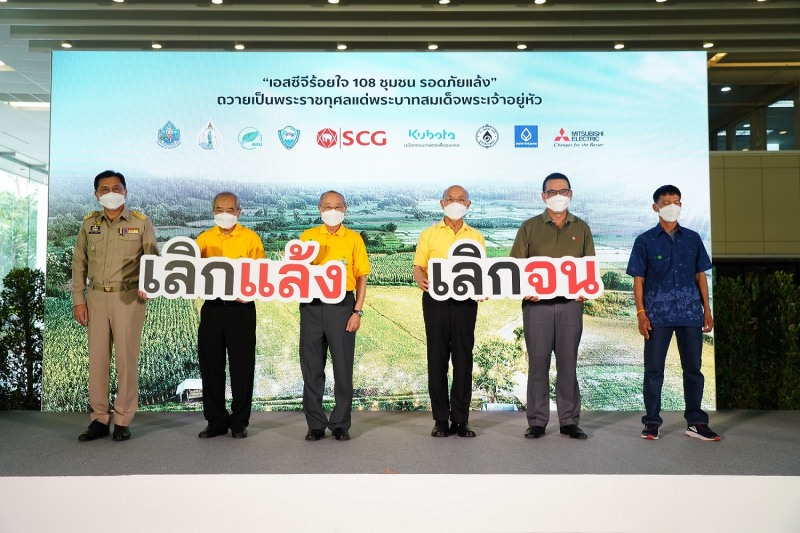 จากปัญหาภัยแล้งในปีนี้ที่มีสัญญาณรุนแรงขึ้น ต้องขอบคุณทุกภาคส่วนที่เข้ามาร่วมมือสนับสนุนชุมชน ให้รอดจากภัยแล้ง ความยากจน ด้วยการใช้ “เลิกแล้ง เลิกจน” โมเดล ซึ่งถอดบทเรียนจากความ สำเร็จของการจัดการน้ำชุมชนที่เอสซีจี และเครือข่ายได้ดำเนินมากว่า 10 ปี และโครงการ “เอสซีจี ร้อยใจ 108 ชุมชน รอดภัยแล้ง” ถวายเป็นพระราชกุศลแด่พระบาทสมเด็จพระเจ้าอยู่หัว เนื่องในโอกาส เอสซีจี ครบรอบ 108 ปี ซึ่งเป็นไปตามหลักการทรงงานที่พระบาทสมเด็จพระบรมชนกาธิเบศร มหาภูมิพลอดุลยเดชมหาราช บรมนาถบพิตร และเป็นแนวทางการทรงงานที่พระบาทสมเด็จพระเจ้าอยู่หัวรัชกาลที่ 10 ทรงสืบสาน รักษา และต่อยอด พระราชปณิธานดังกล่าวสืบต่อไป”