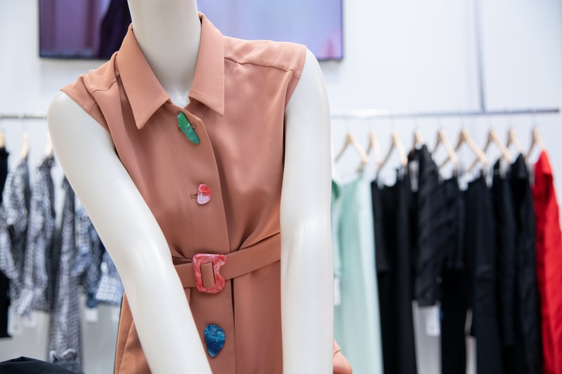 3. RECYCLE MATERIAL เมื่อพูดถึงความยั่งยืนในวงการแฟชั่น หลายคนมักนึกถึงการนำวัสดุเหลือใช้ในอุตสาหกรรมสิ่งทอนำกลับมาดีไซน์ใหม่ แต่สำหรับ Shaka ไม่ใช่แค่นั้น เพราะนิยามความยั่งยืนของชากะคือ การไม่เพิ่มภาระให้กับสิ่งแวดล้อม ดังนั้น ความยั่งยืนของชากะจึงเริ่มตั้งแต่ในส่วนของโรงงานที่มีระบบการบำบัดน้ำเสียเพื่อไม่ทำลายสิ่งแวดล้อม การดูแลพนักงานให้ทำงานอย่างมีความสุข โดยมีการเปิด Nursery ให้พนักงานนำบุตรหลานมาฝากระหว่างทำงานได้ ทั้งยังมีการให้ องค์ความรู้ ในการตัดเย็บ รวมถึงการนำวัสดุ Recycle มาใช้ใหม่ โดยคอลเล็คชั่นนี้ Shaka ได้หยิบเอาพลาสติกที่ไม่ใช้แล้วมาทำให้เกิดรูปแบบใหม่ ทั้งกระดุมและหัวเข็มขัดในรูปทรงต่างๆ เพื่อใช้เป็นวัสดุในการตกแต่งเสื้อผ้าของ Shaka