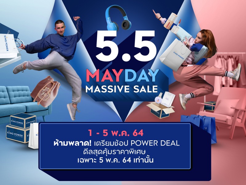 ประเดิมโปรโมชั่นแรกของเดือนพฤษภาคมกับแคมเปญ 5.5 May Day Massive Sale สินค้าแบรนด์เนมชั้นนำราคาดิวตี้ ฟรี อาทิ สินค้าแฟชั่น น้ำหอม เครื่องสำอาง สกินแคร์ ของแต่งบ้าน และเครื่องใช้ไฟฟ้าภายในบ้าน มอบส่วนลดสูงสุด 60% เมื่อช้อปสินค้าครบ 3,000 บาท เพียงใส่รหัส : MAYDAY55 หรือลดเพิ่มอีก 5% เมื่อช้อปครบ 1,200 บาท เพียงใส่รหัส #SV CODE โค้ดส่วนลดจากพนักงาน คิง เพาเวอร์ พิเศษ! เฉพาะวันที่ 5 เดือน 5 วันเดียวเท่านั้นกับดีลสุดพิเศษขนขบวนสินค้าแบรนด์เนมคุณภาพมาลดราคาสูงสุด 70% ไม่มีขั้นต่ำ ไม่ต้องใส่รหัสส่วนลด สินค้ามีจำนวนจำกัด ช้อปก่อนมีสิทธิ์ก่อน