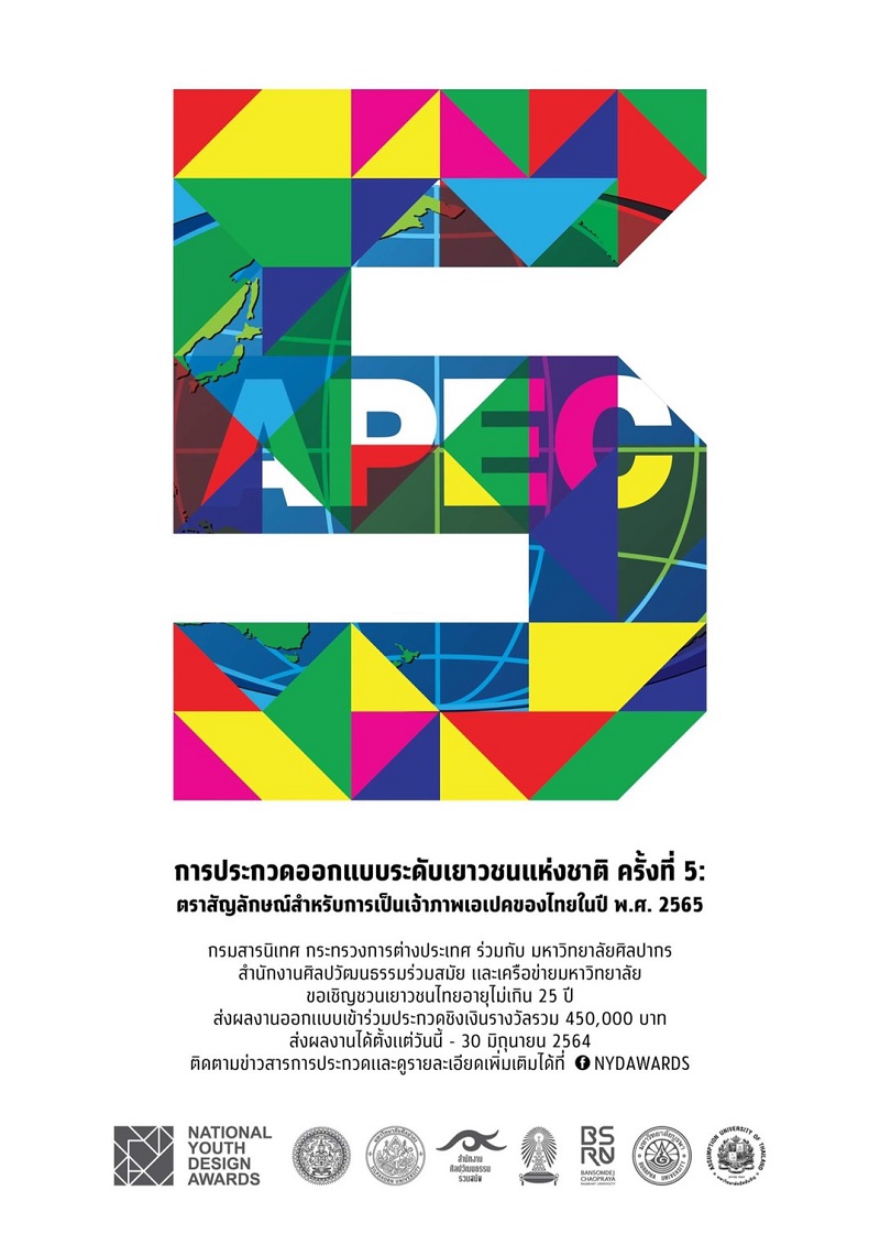 กรมสารนิเทศ กระทรวงการต่างประเทศ ร่วมกับ คณะมัณฑนศิลป์ มหาวิทยาลัยศิลปากร สำนักงานศิลปวัฒนธรรมร่วมสมัย คณะสถาปัตยกรรมศาสตร์ จุฬาลงกรณ์มหาวิทยาลัย คณะมนุษยศาสตร์และสังคมศาสตร์ มหาวิทยาลัยราชภัฏบ้านสมเด็จเจ้าพระยา คณะนิเทศศาสตร์ มหาวิทยาลัยอัสสัมชัญ คณะศิลปกรรมศาสตร์ มหาวิทยาลัยบูรพา และ สำนักงานศิลปวัฒนธรรมร่วมสมัย กระทรวงวัฒนธรรม จึงได้จัดการประกวดออกแบบระดับเยาวชนแห่งชาติ ครั้งที่ 5 ขึ้น เพื่อคัดสรรผลงานออกแบบตราสัญลักษณ์ สำหรับการเป็นเจ้าภาพเอเปคของไทยในปี พ.ศ. 2565 โดยผลงานที่ส่งเข้าประกวดจะต้องสะท้อนประเด็นสำคัญที่ต้องการผลักดัน (priorities) สาขาความร่วมมือที่สำคัญ (key areas) และแนวคิดหลัก (theme) ที่ไทย มุ่งเน้นในช่วงการเป็นเจ้าภาพในปี พ.ศ. 2565 มีความสวยงาม ทันสมัย มีเอกลักษณ์ สื่อความหมายถึงความเป็นไทยและความร่วมมือของประเทศสมาชิก