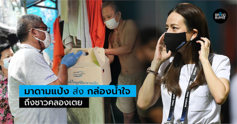 “มาดามแป้ง” นวลพรรณ ล่ำซำ กรรมการผู้จัดการ และประธานเจ้าหน้าที่บริหาร บริษัท เมืองไทยประกันภัย จำกัด (มหาชน) หรือ MTI ส่งกล่องน้ำใจมูลนิธิมาดามแป้ง บรรเทาความเดือดร้อนช่วงกักตัวของชาวคลองเตยเกินร้อยชีวิต ทั้ง 43 ชุมชน พร้อมตั้งครัวมาดามทุกวัน