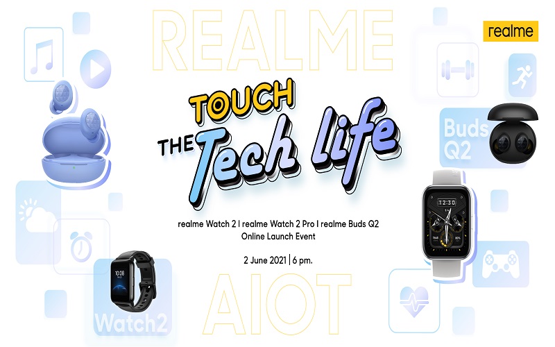 realme แบรนด์สมาร์ทโฟนเพื่อคนรุ่นใหม่ที่เติบโตเร็วที่สุดในโลก ชวนคุณร่วมเปิดประสบการณ์สุดล้ำกับผลิตภัณฑ์ AIoT รุ่นใหม่ล่าสุดจาก realme ในงาน Touch The Tech Life งานเปิดตัวสมาร์ทวอทช์ ที่ตอบโจทย์สำหรับคนรุ่นใหม่ในยุคปัจจุบัน ซึ่งมาพร้อมกับดีไซน์สุดหรู นับเป็นหนึ่งในสมาร์ทวอทช์ที่ดีที่สุดและคุ้มค่าที่สุดสำหรับ Android กับ realme Watch 2 และ realme Watch 2 Pro สมาร์ทวอทช์อัจฉริยะได้รับมาตรฐานด้านคุณภาพชั้นเยี่ยมพร้อมฟังก์ชั่นหลากหลาย ที่จะพาคุณไปสู่โลกที่เหนือระดับ นอกจากนี้ ยังมาพร้อมกับ realme Buds Q2 หูฟังไร้สายซึ่งได้รับแรงบันดาลใจยอดเยี่ยมและอัดแน่นไปด้วยระบบควบคุมอัจฉริยะ
