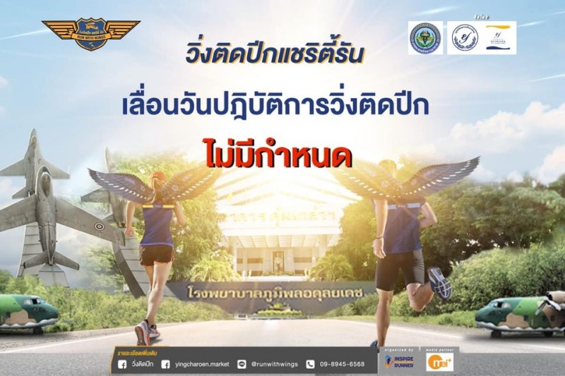 จากสถานการณ์การแพร่ระบาดของ โควิด-19 ระลอกใหม่ทางคณะผู้จัดงานวิ่งติดปีก คำนึงถึงความปลอดภัยของนักวิ่งเป็นอันดับแรก จึงมีความจำเป็นต้องเลื่อนการจัดงานวิ่งติดปีก แชริตี้รัน ออกไปเป็นครั้งที่ 4 จากเดิมกำหนดจัดในวันที่ 6 มิถุนายน 2564 โดยเลื่อนไปไม่มีกำหนด จนกว่า ศูนย์บริหารสถานการณ์โควิด-19 (ศบค.) มีประกาศอนุญาตให้มีการจัดงานวิ่งอย่างเป็นทางการ ผู้จัดงานจะแจ้งกำหนดวันให้ทราบล่วงหน้าไม่น้อยกว่า 60 วัน