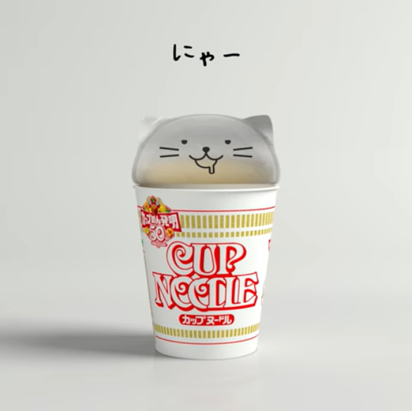 สิ่งที่นิชชินออกแบบได้อย่างเก๋ไก๋อยู่บริเวณฝาถ้วยบะหมี่ โดยพวกเขาออกไอเดียฝาปิดถ้วยบะหมี่แบบใหม่ให้มีลักษณะคล้าย “หูแมว” หลังจากพบว่า ฝาปิดแบบเดิม ซึ่งมีจุดปิดเพียงจุดเดียวนั้น ทำให้บริษัทต้องเพิ่มพลาสติกกาวมาช่วยยึดให้มันปิดแน่นขึ้นเวลาที่เทน้ำร้อนลงไปในถ้วยบะหมี่ แต่เมื่อเพิ่มเป็น 2 จุด มันก็ยึดได้แน่นขึ้น ส่วนแถบพลาสติกกาวที่เคยต้องใช้ก็ไม่จำเป็นอีกต่อไปนั่นเอง