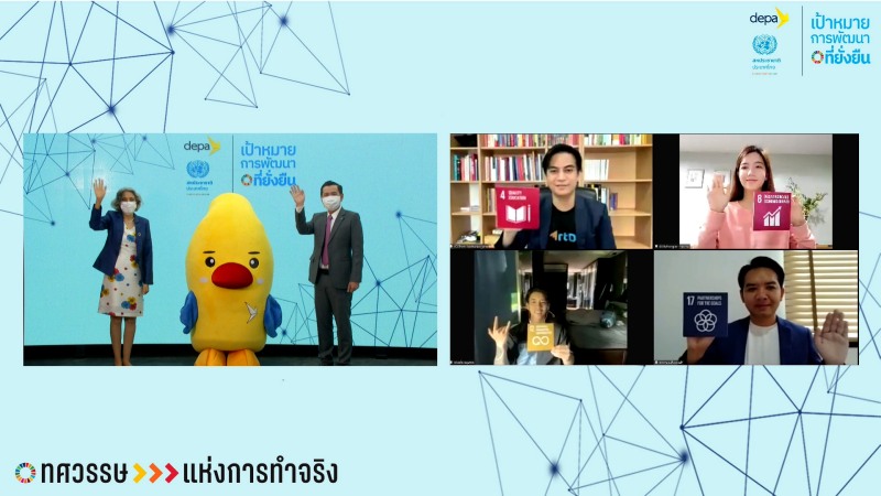 สหประชาชาติ ประเทศไทย (UN Thailand) ร่วมกับสำนักงานส่งเสริมเศรษฐกิจดิจิทัล (depa) เปิดตัวแคมเปญ Decade of Action, Decade of Innovation ทศวรรษแห่งการลงมือทำ ทศวรรษแห่งนวัตกรรม เพื่อก้าวใหม่สู่การพัฒนาที่ยั่งยืน โดยไม่ทิ้งใครไว้ข้างหลัง เพื่อส่งเสริมการใช้โซลูชั่นเทคโนโลยีและนวัตกรรมเพื่อให้บรรลุเป้าหมายการพัฒนาที่ยั่งยืน (SDGs) ที่มีความสำคัญต่อการพัฒนาของโลกในอนาคต ในช่วงสนทนา กลุ่มอินฟลูเอ็นเซอร์ได้ร่วมแบ่งปันมุมมองต่อเป้าหมายการพัฒนาที่ยั่งยืน ประกอบด้วย ทนพ.ภาคภูมิ เดชหัสดิน เจ้าของเพจ หมอแล็บ แพนด้า ดิจิทัลมีเดียสร้างความเข้าใจ และความร่วมมือฝ่าวิกฤติโควิด-19 คุณพริษฐ์ วัชรสินธุ: เทคโนโลยีจะช่วยทำให้เด็กนักเรียนเข้าถึงการศึกษาที่มีคุณภาพ คุณริชชี่ อรเณศ ดีคาบาเลส และ คุณเบิ้ล ปทุมราช อาร์สยาม ตัวแทนคนบันเทิงรุ่นใหม่เพื่อชุมชน สร้างความมั่นคงทางรายได้ด้วยการเกษตร