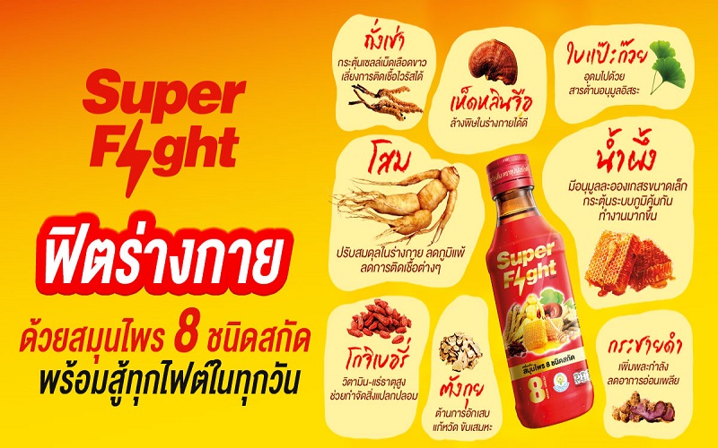 เปิดตัวไปเป็นที่เรียบร้อยแล้ว สำหรับเครื่องดื่มทางเลือกเพื่อคนรักสุขภาพที่กำลังมาแรงเป็นกระแส อย่างแบรนด์ “ซุปเปอร์ไฟต์” (SuperFight) โดย บมจ.เชอร์วู้ด คอร์ปอเรชั่น หรือ SWC ถือเป็นเครื่องดื่มสมุนไพรเพื่อสุขภาพ ที่ให้ความสดชื่น และได้รับเครื่องหมายสัญลักษณ์โภชนาการทางเลือกสุขภาพ (Healthier Choice) สูตรน้ำตาลน้อย ปริมาณเกลือ (โซเดียมต่ำ) และใช้คาเฟอีนธรรมชาติจากชาเขียวสกัด ที่ดื่มง่ายพร้อมมอบพลังงานความสดชื่น