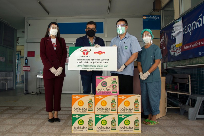 การระบาดของไวรัสโควิด-19 ที่มีตัวเลขสูงขึ้นทุกวัน ส่งผลกระทบต่อประชาชนชาวไทยในวงกว้างอย่างรวดเร็ว ทำให้ทุกหน่วยงานที่เกี่ยวข้องต้องเสียสละความปลอดภัยส่วนตัว และต้องทำงานอย่างเหน็ดเนื่อยเนื่องจากมีผู้ป่วยและผู้ที่เดือดร้อนมาติดต่อขอเข้ารับบริการเป็นจำนวนมาก บริษัท คาราบาวกรุ๊ป จำกัด (มหาชน) ขอเป็นส่วนหนึ่งสนับสนุนการทำงานเพื่อสังคมของหน่วยงานต่างๆ ที่ช่วยเหลือประชาชนท่ามกลางวิกฤติการณ์นี้ โดยขอเป็นส่วนหนึ่งที่ส่งกำลังใจ ด้วยการส่งมอบเครื่องดื่มวิตามินซี “วู้ดดี้ ซี+ ล็อค” เสริมสร้างภูมิคุ้มกันให้กับบุคลากรทางการแพทย์ และเจ้าหน้าที่หน่วยงานภาครัฐ เราหวังว่ากำลังใจของเราชาวไทยทุกคน จะทำให้พวกเราคนไทยผ่านวิกฤติในครั้งนี้ไปด้วยกัน