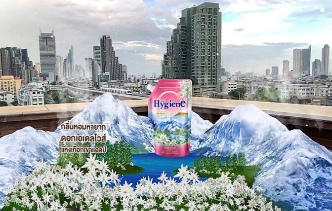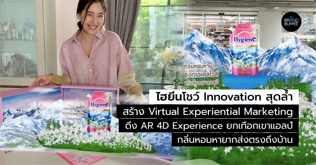 ดังนั้นความท้าทายต่อไปของแบรนด์ก็คือ แล้วจะทำอย่างไรให้ผู้บริโภคได้รับรู้ ถึงความหอมหายากแบบ Best Origins ในยุคโควิดที่ใครๆ ก็ไม่อยากเดินออกบ้าน ซึ่งทำให้การสร้าง Emotional Connection แบบ Experiential Marketing เดิมๆอาจยังไม่พอ ไฮยีนจึงต้องปรับเกมส์ยกระดับอีกขั้นด้วยการสร้าง Virtual Experiential Marketing ที่หยิบเอาเทคโนโลยีมาสร้างประสบการณ์แบบเสมือนจริงเสิร์ฟให้กลุ่มเป้าหมายถึงทั้งที่ห้างและในบ้านด้วยเทคโนโลยี AR Scan Pack มาใช้ครั้งแรกในกลุ่มสินค้า Home Care เพื่อสร้างประสบการณ์แบบ 4D Experience ผ่านมือถือ โดยให้ได้สัมผัสกับเทือกเขาแอลป์ซึ่งเป็นแหล่งกำเนิดที่มาของความหอมหายากแบบมีมิติเสมือนจริงอยู่ตรงหน้า โดยเน้นให้ผู้บริโภคได้เพลิดเพลินกับภาพ เสียง และกลิ่นจากผลิตภัณฑ์ และสามารถถ่ายรูปร่วมกับเทือกเขาแอลป์ได้อีกด้วยกิจกรรมนี้นับเป็นวิธีใหม่ในการสร้าง Engage กับลูกค้า