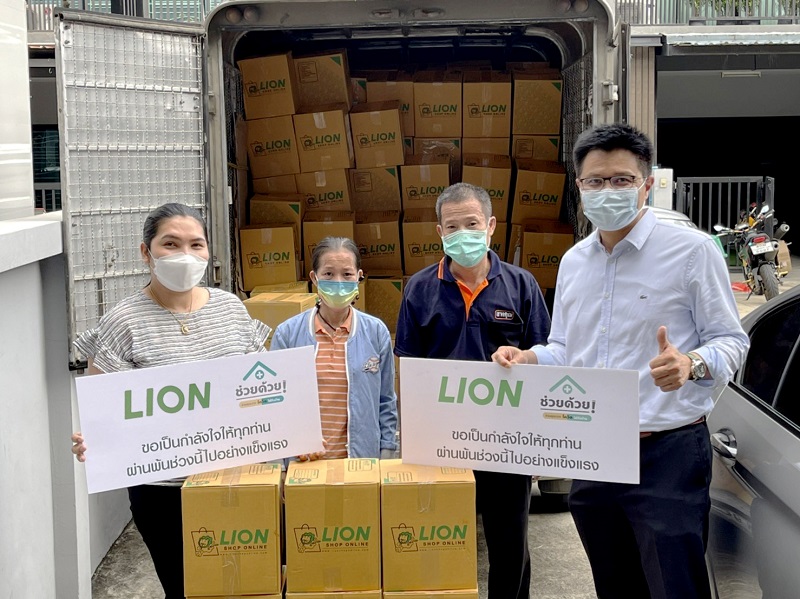 บริษัท ไลอ้อน (ประเทศไทย) จำกัด ผู้ผลิตและจำหน่ายสินค้าอุปโภค ร่วมฝ่าวิกฤตโควิด-19 โดยมอบกล่องยังชีพ จำนวน 240 ชุด ซึ่งภายในบรรจุผลิตภัณฑ์อุปโภคที่จำเป็น อาทิ ผลิตภัณฑ์ดูแลช่องปากซอลส์ และซิสเท็มมา, ผงซักฟอกเปา, โฟมล้างมือคิเรอิคิเรอิ เพื่อช่วยเหลือผู้ติดเชื้อโควิด-19 ที่รักษาตัวอยู่ที่บ้าน (Home Isolation) ในโครงการ “ช่วยด้วย!” ช่วยดูแลผู้ป่วยโควิด-19 ถึงบ้าน โดย Doctor A to Z แพลตฟอร์มระบบปรึกษาแพทย์ออนไลน์ ช่วยเหลือผู้ติดเชื้อโควิด-19 ระดับสีเขียวและสีเหลือง โดยมีแพทย์จิตอาสากว่า 400 คนให้คำปรึกษาและติดตามอาการอย่างใกล้ชิด