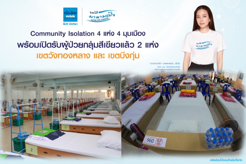 Community Isolation หรือ ศูนย์พักคอย 4 มุมเมือง ภายใต้การสนับสนุนของ “เมืองไทยประกันภัย” และ “มูลนิธิมาดามแป้ง” เปิดรับผู้ป่วยกลุ่มสีเขียวแล้ว 2 แห่งแรก ในเขตบึงกุ่มและวังทองหลาง พร้อมส่งทีมอาสากล้าใหม่เข้าอบรมเป็นผู้ช่วยร่วมทำงานกับบุคลากรทางการแพทย์
