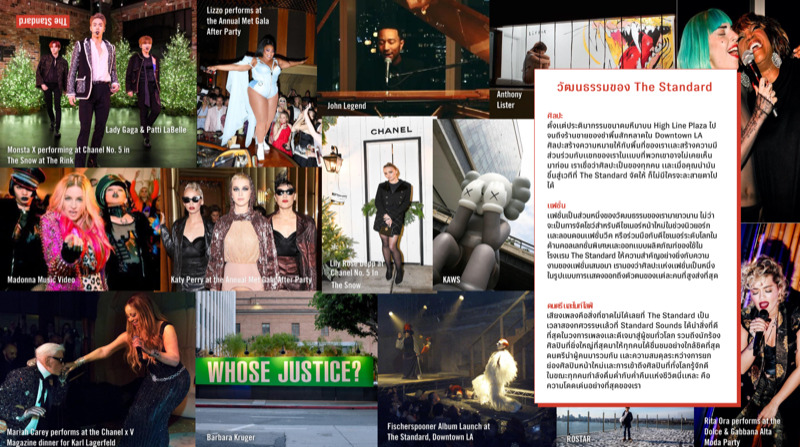 - ด้วยความที่ Brand DNA ของ The Standard คือ การนำเสนอความเป็นศิลปะ แฟชั่น ดนตรี อาหารการกิน Night Life วัฒนธรรม ชุมชน เพราะฉะนั้นจะสังเกตได้ว่าเมืองที่มี The Standard เลือกทำตลาด จะเป็นเมืองที่มีองค์ประกอบเหล่านี้ ซึ่งหลาย