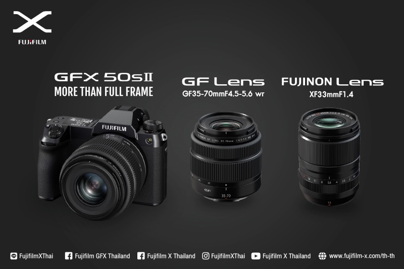 ฟูจิฟิล์ม (ประเทศไทย) ประกาศการเป็นผู้นำตลาดกล้องไฮเอนด์ เดินหน้าเปิดตัวกล้องดิจิตอลมิลเลอร์เลสอย่างต่อเนื่อง ปลุกกระแสตลาดกล้องระดับมืออาชีพ ในช่วงสถานการณ์การแพร่ระบาดโรคโควิด-19 ล่าสุดกับการเปิดตัว FUJIFILM GFX50S II และ เลนส์ GF35-70 mm. F4.5-5.6 WR ชูนวัตกรรมและเทคโนโลยี พร้อมฟังก์ชั่นการใช้งาน ของ GFX50S II ที่หลากหลาย ด้วยขนาดกล้องที่เล็ก พกพาสะดวก น้ำหนักเบา ให้คุณภาพไฟล์ภาพที่ดีเยี่ยม รองรับกลุ่มคนที่มีไลฟ์สไตล์ที่ชื่นชอบและหลงใหลการถ่ายภาพที่ต้องการงานที่มีคุณภาพระดับแบบมืออาชีพ รวมถึงช่างภาพมืออาชีพในด้านต่างๆ ซึ่ง GFX50S II สามารถตอบโจทย์ทุกการใช้งานของนักสร้างสรรค์ภาพทุกระดับ ฟูจิฟิล์มมองเห็นถึงโอกาสทางการตลาดที่สามารถต่อยอดได้ในกลุ่มนี้ และสามารถสร้างฐานลูกค้าใหม่และขยายตลาดให้เติบโตขึ้นด้วยกล้อง GFX50S II ซึ่งเป็นกล้องถ่ายภาพระดับไฮเอนด์พรีเมี่ยม ที่ให้คุณภาพเหนือชั้นกว่า Full Frame (More than Full Frame)