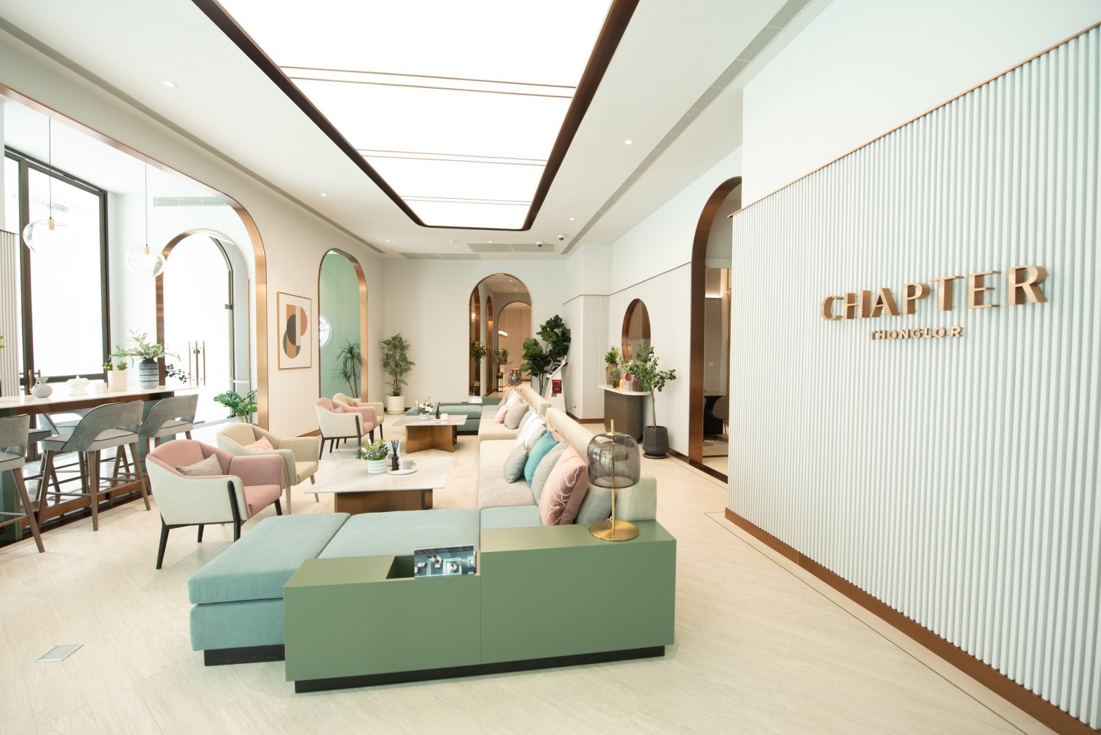 สำหรับพื้นที่ส่วนกลาง ยังมอบประสบการณ์ใหม่ที่ให้ทั้งความสะดวกและความเป็นส่วนตัวในแบบ Unlimited ผ่านการออกแบบฟังก์ชั่นใช้งานที่หลากหลายครบครันในการใช้ชีวิตของคนเมืองเช่นกัน ทั้ง Chapter Hall ห้องโถงรับแขกที่ตกแต่งด้วยสีพาสเทล ตัดกับสี Copper ให้ความหรูหราโอ่อ่าปนกับความหวานอย่างลงตัว White Marble Pool สระว่ายน้ำให้ผ่อนคลาย Co-function Space พื้นที่ทำงานของคนยุคนิวนอร์มอลที่มาพร้อมฟังก์ชั่นการพักผ่อนในที่เดียว Fitness และ Stream & Sauna ครบครันในการดูแลตัวเองให้สุขภาพดี และ The Social Club พื้นที่จัดปาร์ตี้เล็กๆ แบบส่วนตัวได้ในวันหยุด