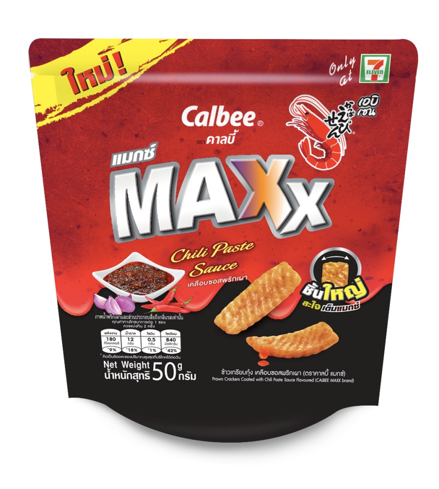 Calbee Maxx ใหญ่ขึ้น – เคลือบซอส ขยายฐานลูกค้า Calbee เปิดตัวผลิตภัณฑ์ใหม่ Calbee Maxx ที่ยังคงความเป็น “ข้าวเกรียบกุ้ง” อันเป็นเอกลักษณ์ของแบรนด์ไว้เช่นเดิม แต่เพิ่มเติมด้วยความชิ้นใหญ่สะใจ แถมรสชาติจัดจ้านเผ็ดซี้ดมากขึ้น ด้วยการเคลือบซอสชุ่มฉ่ำเต็มคำ ทำให้ลูกค้าได้เคี้ยวโดนๆ ทุกคำ