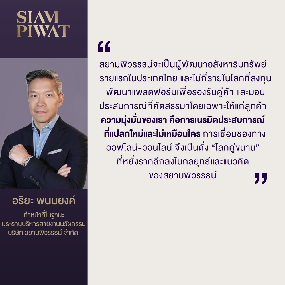 “สยามพิวรรธน์” ผู้นำในตลาดค้าปลีกของไทย เป็นหนึ่งในผู้ประกอบการที่ปรับตัวทำ Digital Platform มาอย่างต่อเนื่อง ทั้งการบุกช่องทางขายผ่านแพลตฟอร์มออนไลน์ และการสร้างระบบการจัดการดาต้าขนาดใหญ่ (Big Data) เพื่อนำข้อมูลมาเชื่อมแพลตฟอร์ม Digital และ Physical เข้าด้วยกัน และสร้างประสบการณ์ในรูปแบบใหม่และแตกต่าง โดยในปี 2563 ที่ผ่านมา ยังดึงมือดีด้านดิจิทัลอย่าง “คุณอริยะ พนมยงค์” มาเป็นหัวหอกสร้างประสบการณ์ดิจิทัล (Digital Experience) อย่างจริงจัง