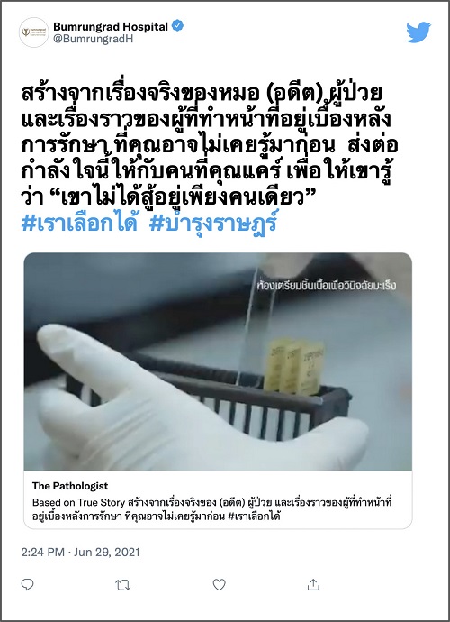 เครดิตทวีตจาก: https://twitter.com/BumrungradH/status/1409759559091068929