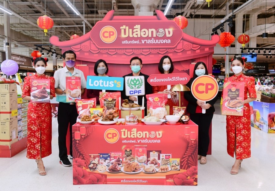 บริษัท เจริญโภคภัณฑ์อาหาร จำกัด (มหาชน) หรือซีพีเอฟ ร่วมกับคู่ค้า ตอกย้ำเจ้าแห่งเทศกาล จัดแคมเปญ “ซีพี ปีเสือทอง เสริมทรัพย์ ขาลรับมงคล” โดยมี นายธีรยุทธ พัชรมณีปกรณ์ รองกรรมการผู้จัดการอาวุโส ซีพีเอฟ พร้อมด้วย นางประถิมา อุเทนพิทักษ์ ผู้อำนวยการฝ่ายสินค้าอาหารสดแปรรูปและสะดวกซื้อ ห้างโลตัส ร่วมเสิร์ฟความมงคลด้วยชุดไหว้ตรุษจีน ยกขบวนสินค้าชั้นดี พร้อมกิจกรรมดูดวงฟรีกับกองทัพหมอดูชั้นนำ ลุ้นรับส่วนลดมากมาย