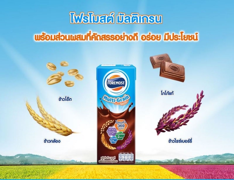โฟร์โมสต์ มัลติเกรน โดดเด่นจากผลิตภัณฑ์นมผสมธัญพืชอื่นๆ เพราะจัดเต็มด้วยส่วนประกอบสำคัญจากสุดยอดธัญพืชถึง 3 ชนิด ได้แก่ ข้าวไรซ์เบอร์รี ข้าวกล้อง และข้าวโอ๊ต อุดมด้วยวิตามินที่จำเป็นต่อการทำงานของระบบประสาทและสมอง ทั้งยังเป็นแหล่งพลังงานที่ดีจากคาร์โบไฮเดรตที่สามารถดูดซึมไปใช้ได้ทันที อัดแน่นด้วยสารอาหารที่มีประโยชน์และตอบโจทย์ความต้องการที่หลากหลายของร่างกาย มีวิตามินและแร่ธาตุรวมกว่า 16 ชนิด มีโอเมก้า 3 6 9 ที่สูงกว่า 2 เท่า และ วิตามินบี 12 สูง ซึ่งสำคัญต่อพัฒนาการทางสมอง มีแคลเซียมสูงกว่า 2 เท่า ช่วยเสริมสร้างความแข็งแรงให้แก่กระดูกและฟัน ซึ่งเป็นรากฐานสำคัญของพัฒนาการของร่างกาย รวมถึงมีวิตามินบี 1 ที่ให้พลังงานแก่ร่างกาย (มีส่วนช่วยให้ร่างกายได้รับพลังงานจากคาร์โบไฮเดรตตามปกติ) โฟร์โมสต์ มัลติเกรน ยังแตกต่างด้วยรสชาติช็อกโกแลตเข้มข้นจากโกโก้แท้ ที่มาพร้อมกลิ่นหอมอ่อนๆ ของธัญพืช ให้รสชาติกลมกล่อมอันเป็นเอกลักษณ์เฉพาะ