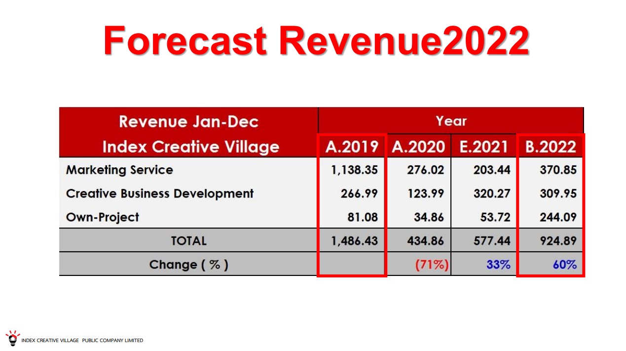 แผนธุรกิจในปี 2565 อินเด็กซ์ฯ วางเป้าหมายรายได้ไว้ 924 ล้านบาท เพิ่มขึ้น 60% เป็นปีที่ลุ้นกลับมามีรายได้แตะ 1,000 ล้านบาทอีกครั้ง
